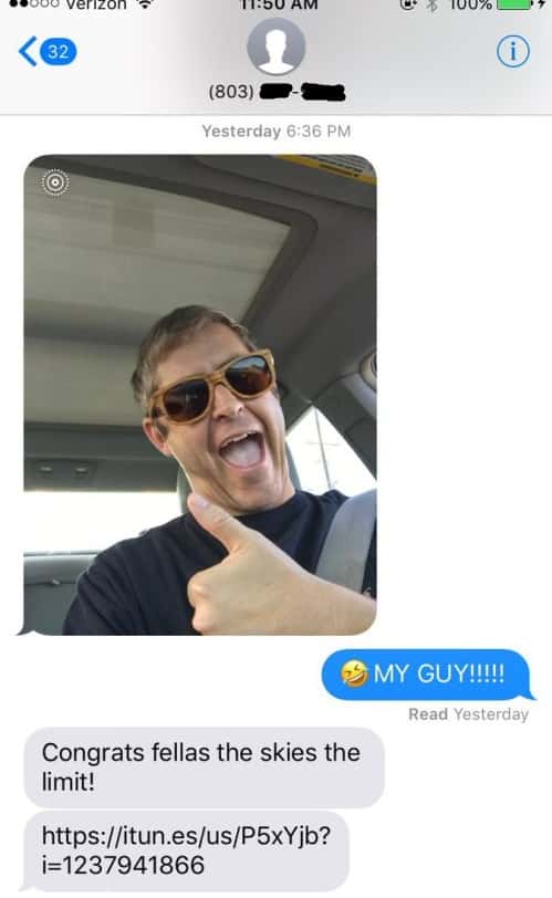 The recipient of the accidental text was Roger Hawkins, a dude from Columbia, SC who had never met the new graduate. It’s easy for people to get a little frustrated with wrong numbers, but Roger just isn’t that kind of guy. He shot a supportive message right back along with a link to some inspirational quotes!