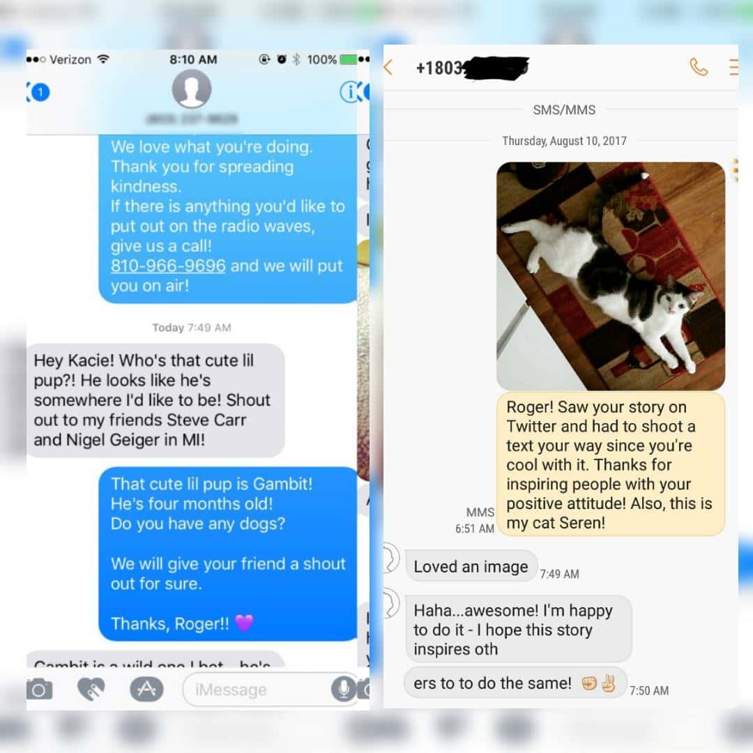 And since he seemed cool with it, even Kacie and I got in on the messaging! Roger didn’t disappoint either, getting back to both of us within the hour!