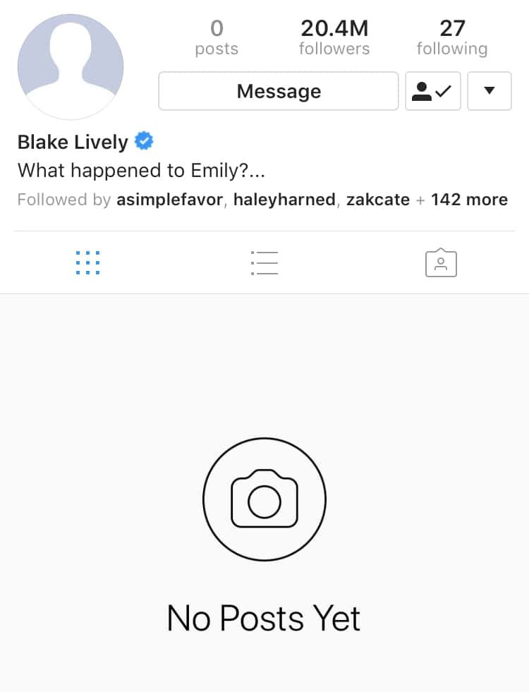 To set the record straight, Lively didn’t JUST unfollow her husband. She unfollowed everyone except for a handful of people named Emily Nelson.