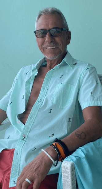 Chris is giving off some Jeff Goldblum vibes in this picture getting custom printed on an official Hot Dad shirt by Timmy D. at Lakeshore Graphics.net!