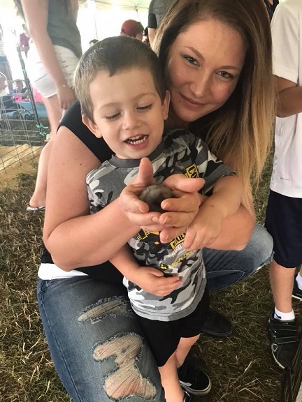Felicia’s a (baby) chick magnet in this picture getting custom printed on an official Hot Mom shirt by Lakeshore Graphics.net!