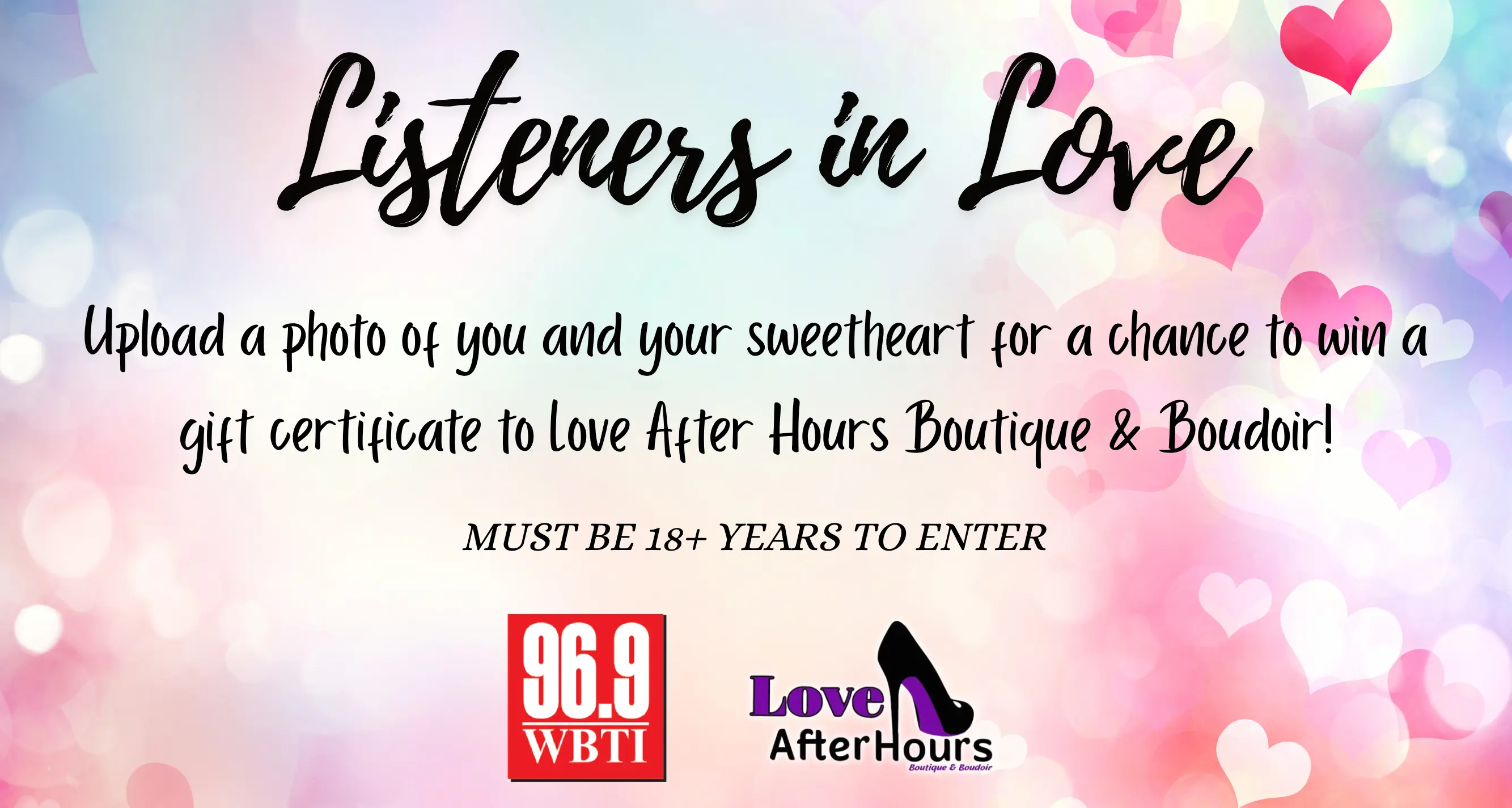 Upload a photo of you and your significant other for a chance to win a gift certificate to Love After Hours Boutique and Boudoir. We will pick one lucky couple on the final Friday each month!