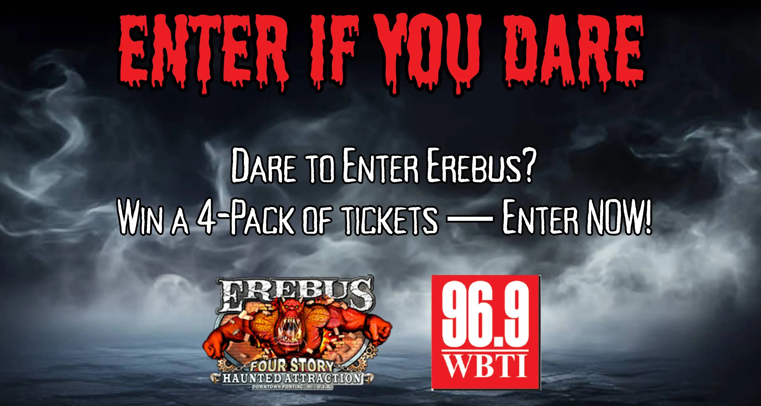 Ready for a scare? 👻 We’re giving away a 4-pack of Erebus Haunted Attraction tickets to 6 lucky winners who will be chosen throughout the week of October 13th–17th. Enter now—if you dare! 💀